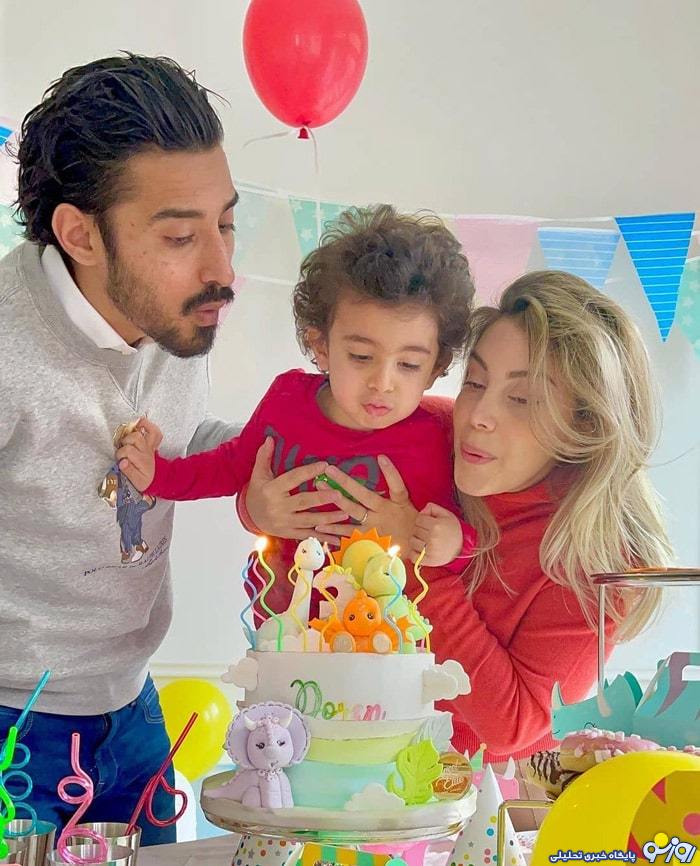 رضا قوچان نژاد به همراه فرزند و همسرش/عکس