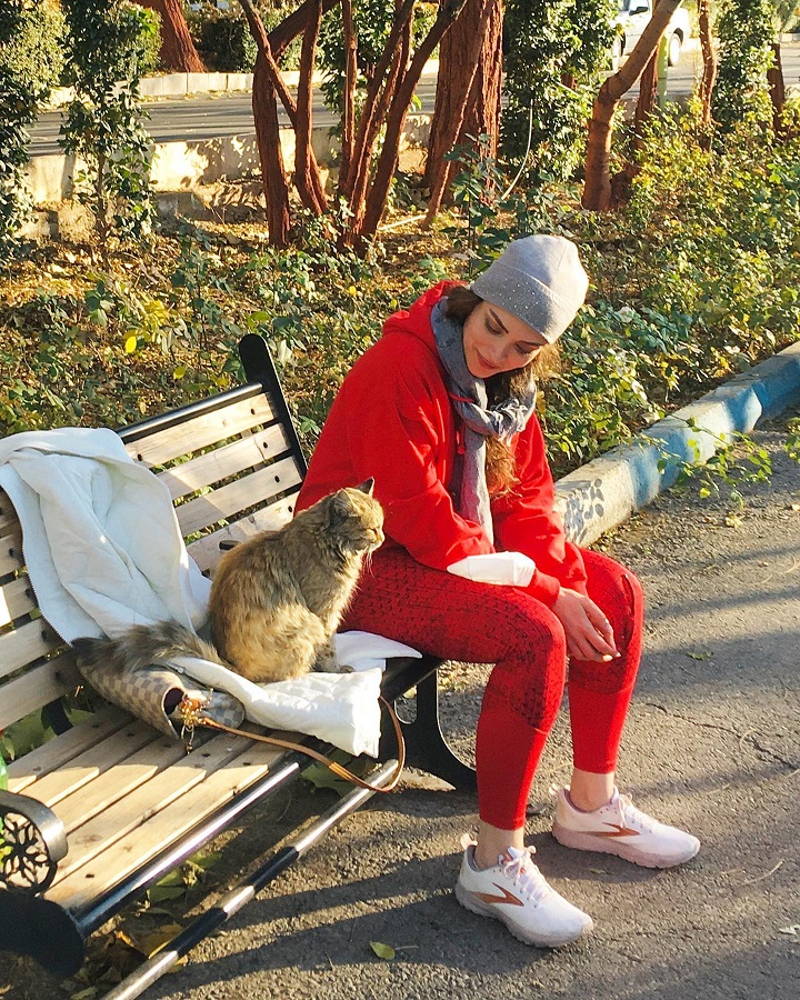 تیپ ورزشی و جذب بهنوش طباطبایی در کنار گربه اش + عکس