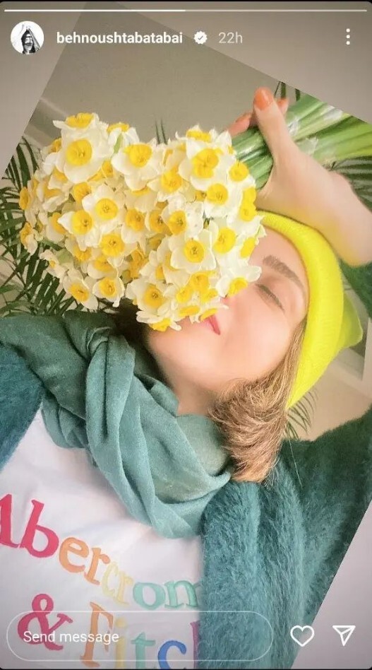 استایل پاییزی بهنوش طباطبایی با گل نرگس/عکس