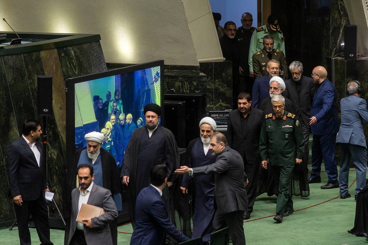 صدای فلش دوربینها یک لحظه قطع نمیشد، هر لحظه یکی از مسئولان عالیرتبه کشور وارد صحن علنی مجلس میشدند. محمد محمدیگلپایگانی (رئیس دفتر رهبری)، سیدیحیی رحیمصفوی (مشاور عالی رهبر انقلاب در امور نیروهای مسلح)، غلامحسین محسنیاژهای (رئیس قوه قضائیه)، محمدجعفر منتظری (رئیس دیوان عالی کشور)، حمزه خلیلی (معاون اول قوهقضائیه)، احمدرضا دستغیب (رئیس دیوان محاسبات)، احمد جنتی، علیاکبر ناطقنوری، غلامعلی حدادعادل، علی لاریجانی، سیدحسن خمینی، سرلشکر سیدعبدالرحیم موسوی (فرمانده ارتش)، سردار سرلشکر حسین سلامی (فرمانده کل سپاه)، سردار احمدرضا رادان (فرمانده کل نیروی انتظامی)، امیر دریادار حبیبالله سیاری (معاون هماهنگکننده ارتش)، شهرام ایرانی (فرمانده نیروی دریایی ارتش)، سردار قاآنی (فرمانده سپاه قدس)، حمید واحدی (فرمانده نیروی هوایی)، سرلشکر محمد باقری (رئیس جدید ستاد کل نیروهای مسلح)، حسینیبوشهری (عضو مجلس خبرگان و رئیس شورایعالی حوزه علمیه قم)، عبدالحسین خسروپناه (دبیر شورایعالی انقلاب فرهنگی)، طحاننظیف (سخنگوی شورای نگهبان)، محمد اسلامی (رئیس سازمان انرژی اتمی)، پیمان جبلی (رئیس سازمان صداوسیما)، علی اکبری (رئیس شورای سیاستگذاری ائمه جمعه)، محمد مخبر (سرپرست ریاستجمهوری)، احمد وحیدی (وزیر کشور)، محمدمهدی اسماعیلی (وزیر فرهنگ و ارشاد اسلامی)، کیومرث هاشمی (وزیر ورزش و جوانان)، سیداسماعیل خطیب (وزیر اطلاعات)، محمدرضا آشتیانی (وزیر دفاع)، علی بهادریجهرمی (سخنگوی دولت)، محمدعلی نیکبخت (وزیر جهاد کشاورزی)، عیسی زارعپور (وزیر ارتباطات و فناوری اطلاعات)، بهرام عیناللهی (وزیر بهداشت، درمان و آموزش پزشکی)، علی باقریکنی (سرپرست وزارت امور خارجه)، رضا مرادصحرایی (وزیر آموزش و پرورش)، احسان خاندوزی (وزیر اقتصاد)، صولت مرتضوی (وزیر تعاون، کار و رفاه اجتماعی)، محمد دهقان (معاون حقوقی رئیسجمهور)، انسیه خزعلی (معاون رئیسجمهور در امور زنان)، محسن منصوری (معاون اجرایی دولت)، سیدامیرحسین قاضیزادههاشمی (رئیس بنیاد شهید و امور ایثارگران)، مهدی چمران (رئیس شورای شهر تهران) و علیرضا زاکانی (شهردار تهران) در این جلسه حضور داشتند.